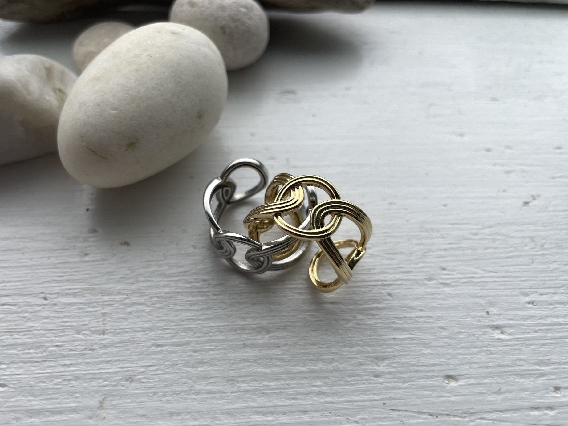 Twin Contrast Open Ring - Gold plated